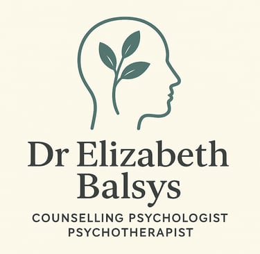 I am Doctor Elizabeth Balsys, a fully qualified Chartered Counselling Psychologist and an Accredited Psychotherapist passionate about helping people recognise their innate capacity for change, healing, and growth. My approach is grounded in the belief that we all have the ability to live more authentic, balanced, and fulfilling lives when we understand our thoughts, emotions, and behaviour.